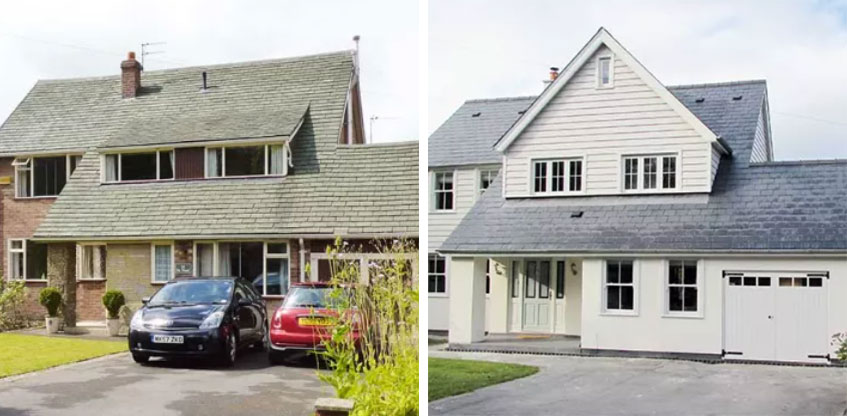 Sometimes, a property has all the space you want but just looks old fashioned and unattractive from the outside. A home owner in Cheshire had this issue and undertook a huge project to fix it which involved removing the entire roof of the house and replacing it. They completely changed the look of the house with a different shaped roof, new windows and cladding which totally covered the uneven brickwork.